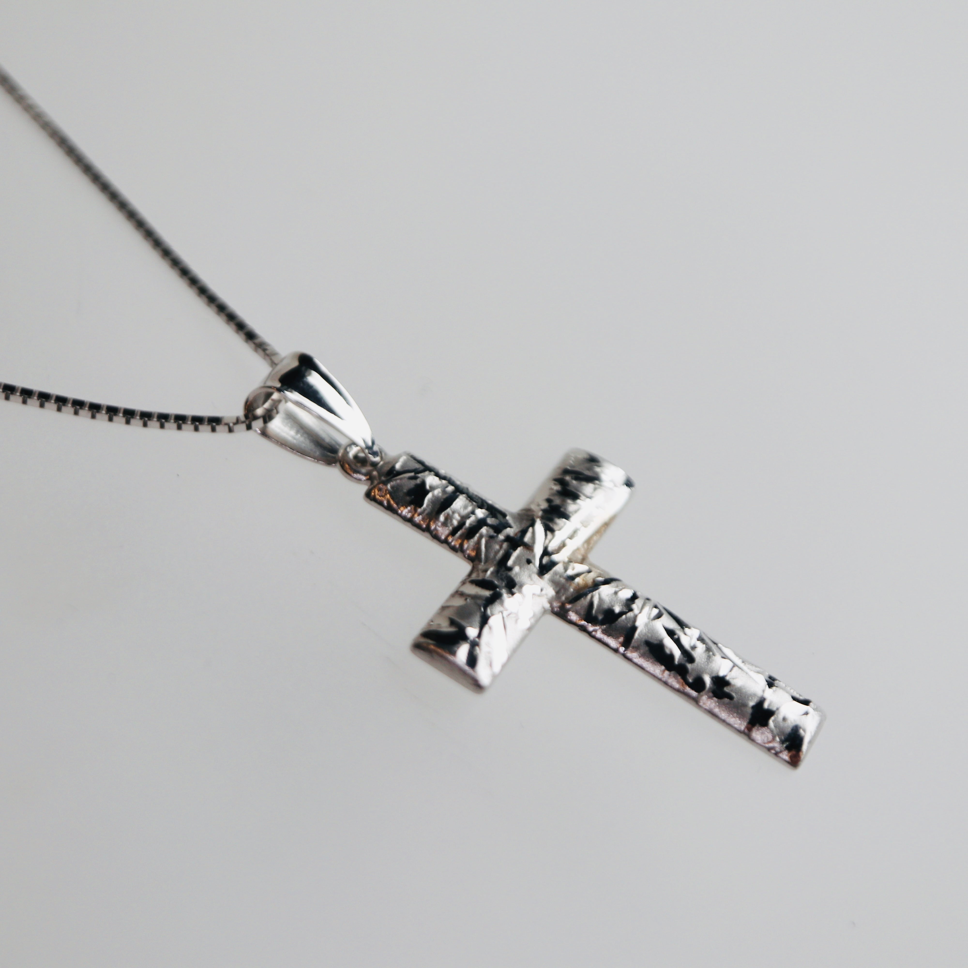 14K white gold textured white gold cross. Chain of your choice sold separately.