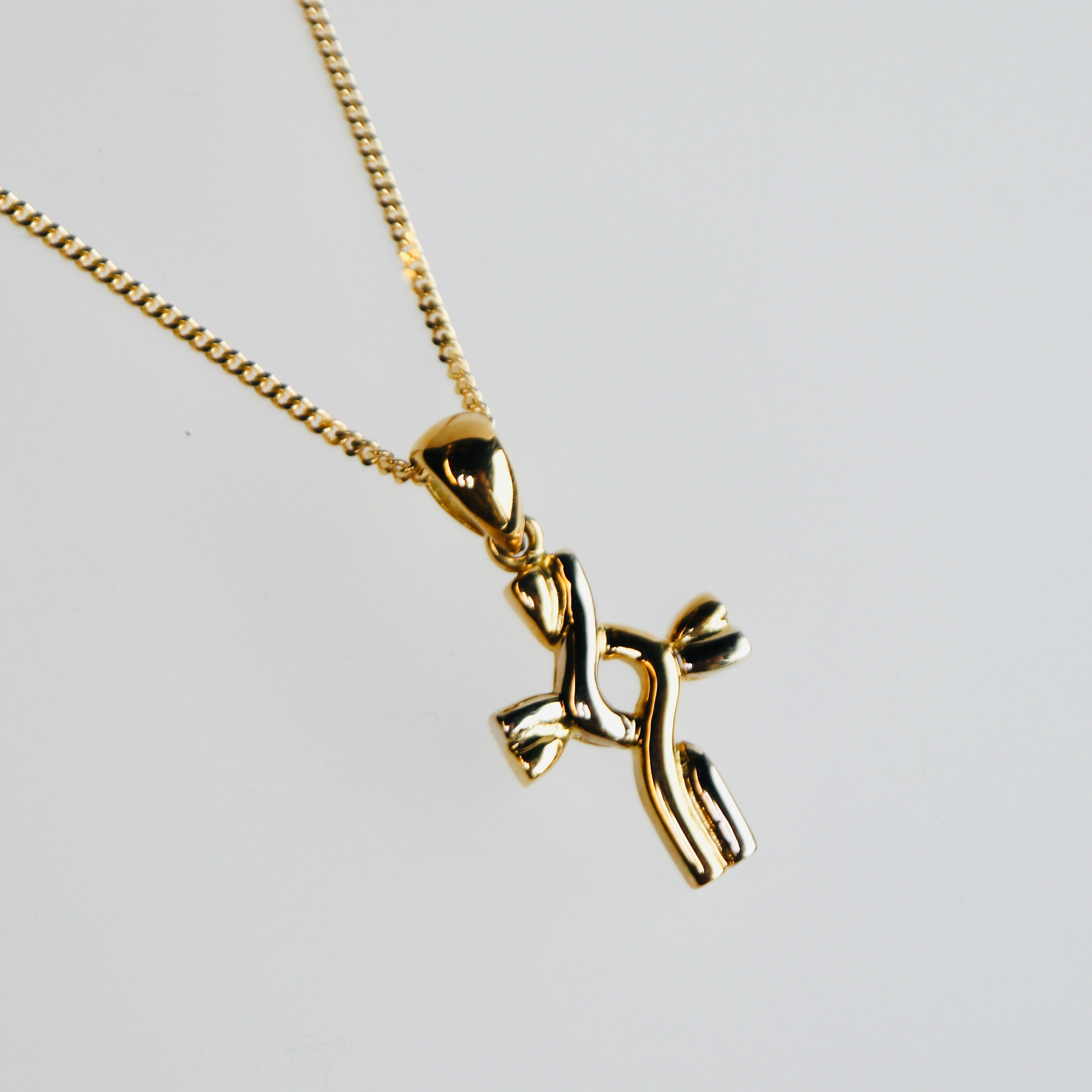 Solid 18K yellow gold cast weave cross. Chain of your choice sold separately.