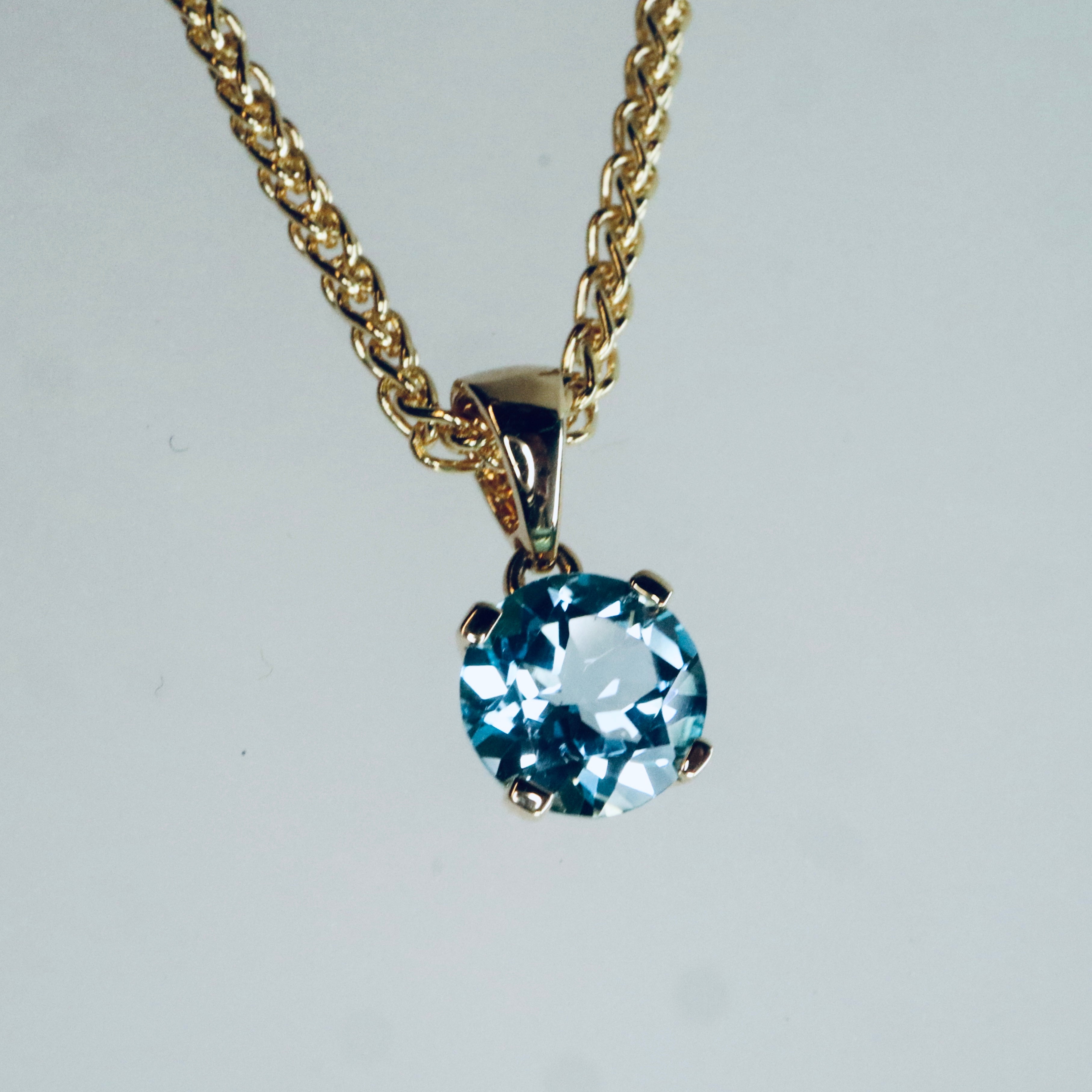 14K yellow gold blue topaz pendant. Chain of your choice sold separately.