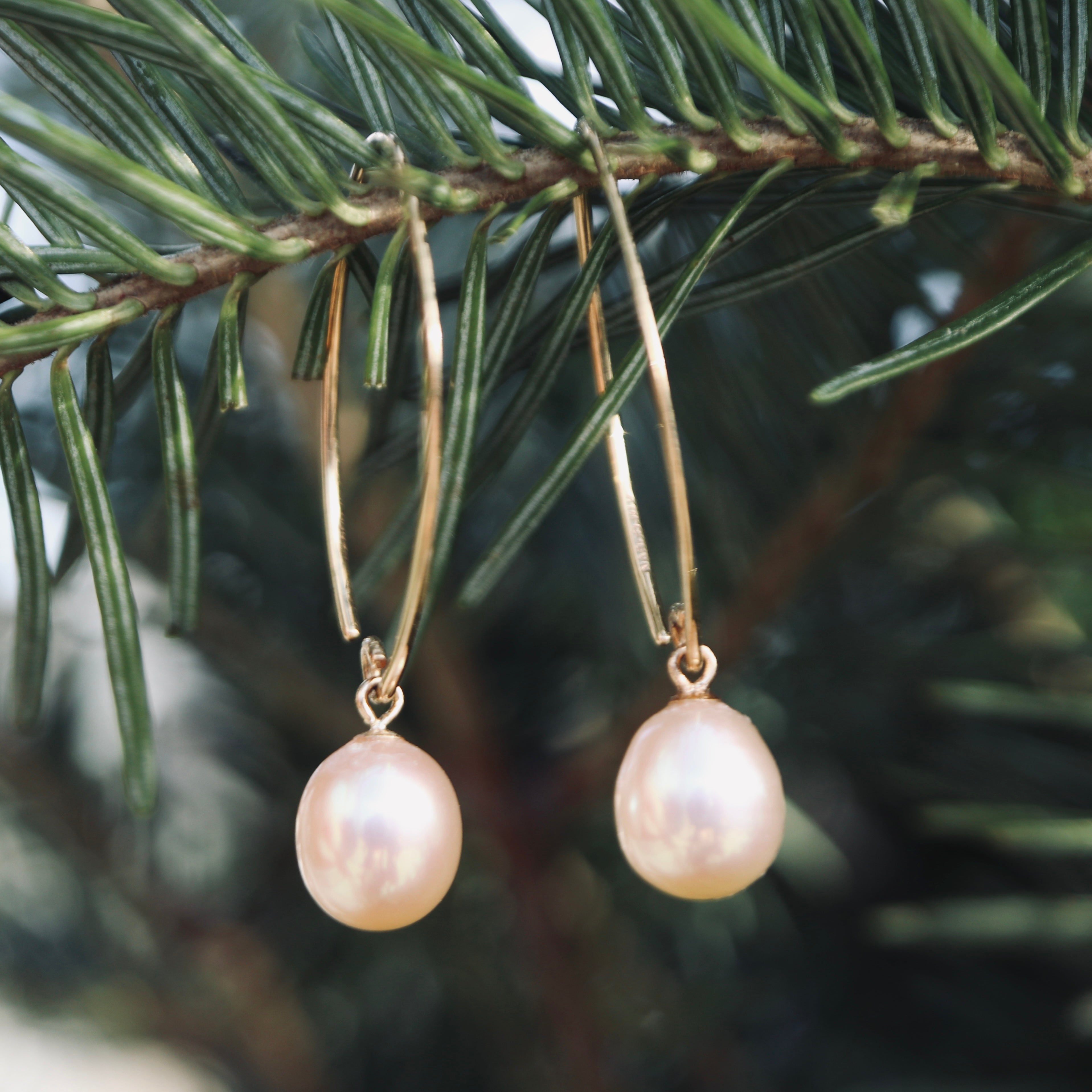 Crafted in 14K yellow gold featuring creamy pink freshwater pearls.