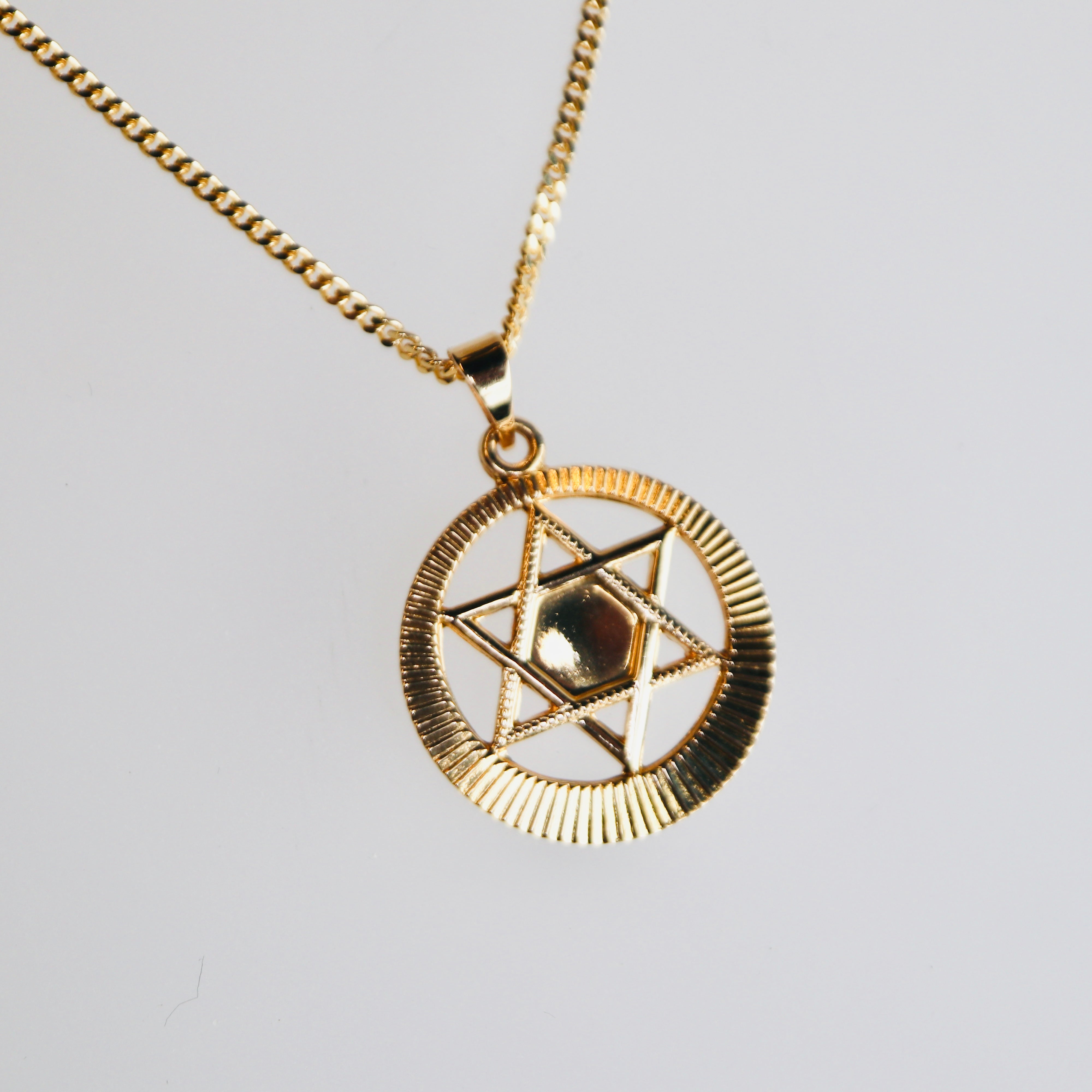 Star of David pendant in 14K yellow gold. Chain of your choice sold separately.